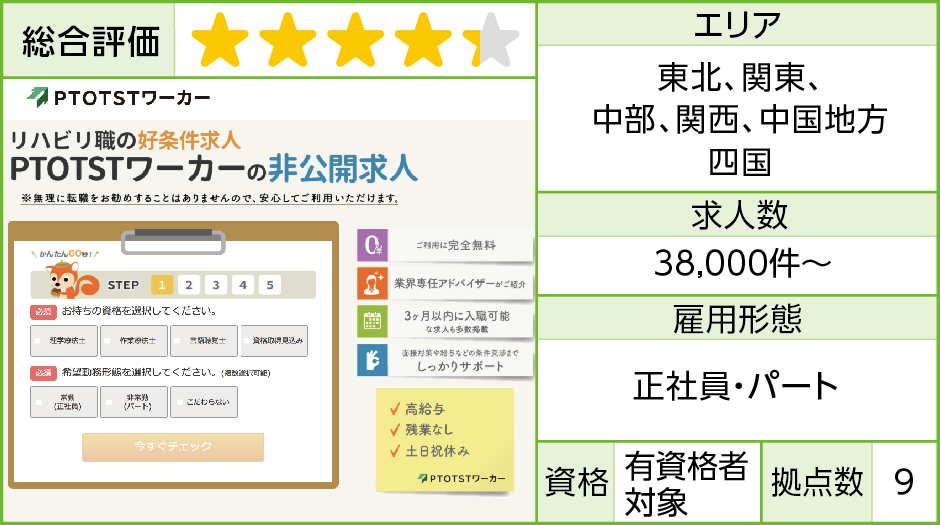 業界大手マイナビによるPTOTSTの求人サービス。「質の良さ」に徹底的にこだわった案件多数。 POINT 質の良い求人案件にこだわっている。 実際に企業訪問し、施設長や採用担当者にヒアリングを行っている。 定着率が著しく […]