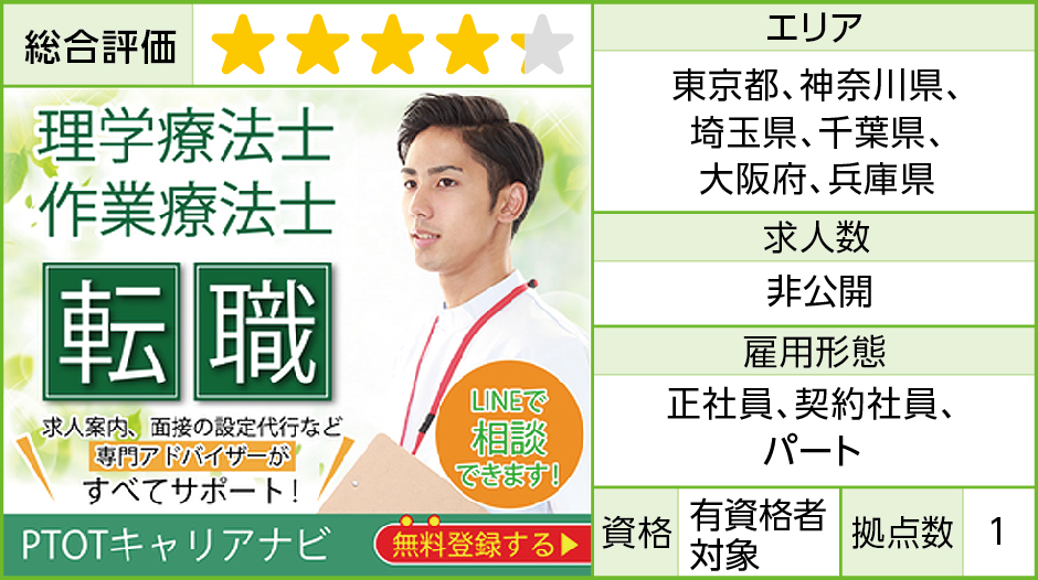 理学療法士と作業療法士専門の転職・就職支援サービス。サポート力が強く、幅広い種類の求人を紹介可能。 POINT 在籍アドバイザーの半数以上が介護、看護、医療分野で10年以上の経験を持ったベテラン揃い。 利用者に合わせたサ […]